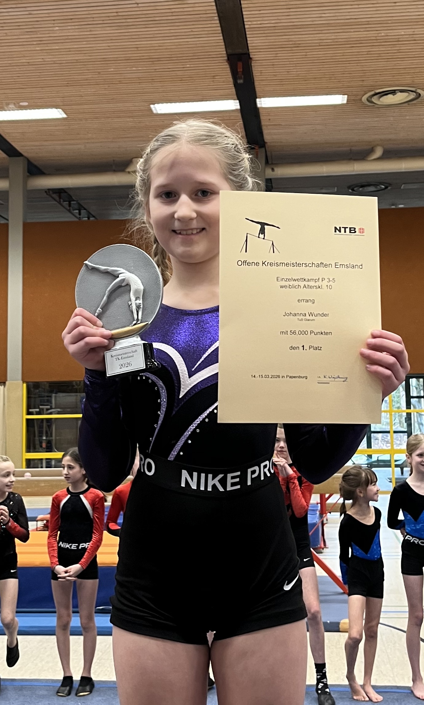 Ein rundum gelungener Wettkampftag: Bei den offenen Kreismeisterschaften in Papenburg präsentierten sich unsere Turnerinnen in starker Form und konnten sich am Ende über großartige Erfolge freuen. Mit viel Spaß, Konzentration, sauberen Übungen und jeder Menge Teamgeist gingen sie an die Geräte – und das zahlte sich aus.