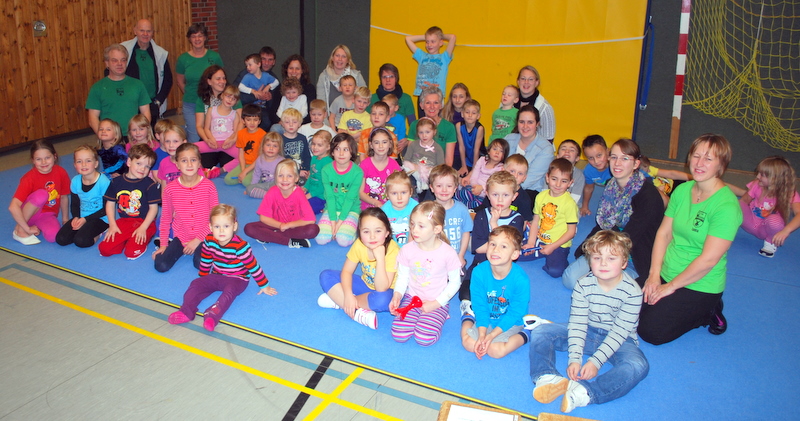 Mit einer kleinen Tanzeinlage zeigten die „Tanzmäuse“ unter der Leitung von Anita Krips ihr Können. Gegen Ende der Veranstaltung wurde in der abgedunkelten und nur mit vielen Taschenlampen stimmungsvoll beleuchteten Turnhalle der mit Spannung erwartete Weihnachtsmann begrüßt, der natürlich kleine Geschenke für die turnfreudigen Kinder dabei hatte.