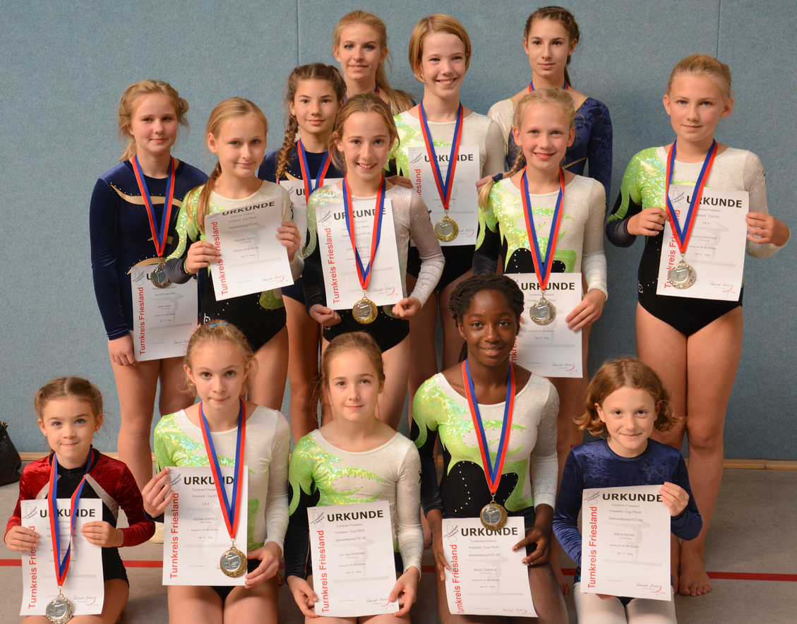 Die herausragenden Turnerinnen waren Elaine Hupfeld (Platz 1), Amke Harms (Platz 2), Brigit Zumdick (Platz 3), und Joy Oeltermann (Platz 4).