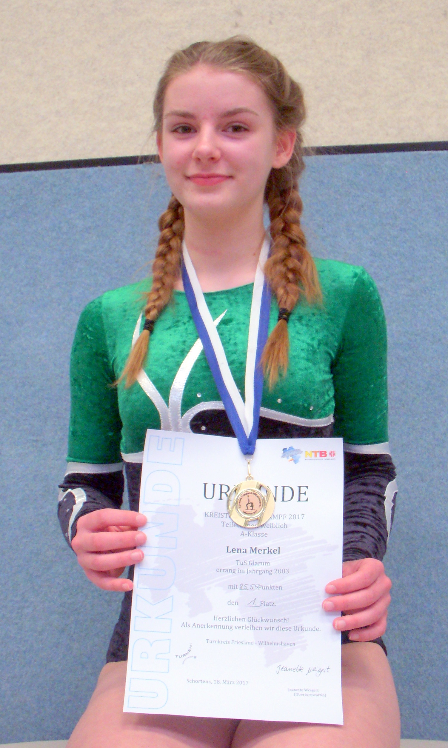 Die höchste Gesamtpunktzahl nicht nur aller Glarumer Turnerinnen, sondern aller teilnehmenden Turnerinnen erreichte Lena Merkel. Damit erhält sie auch den Hartwig-Breckwoldt-Pokal in diesem Jahr.