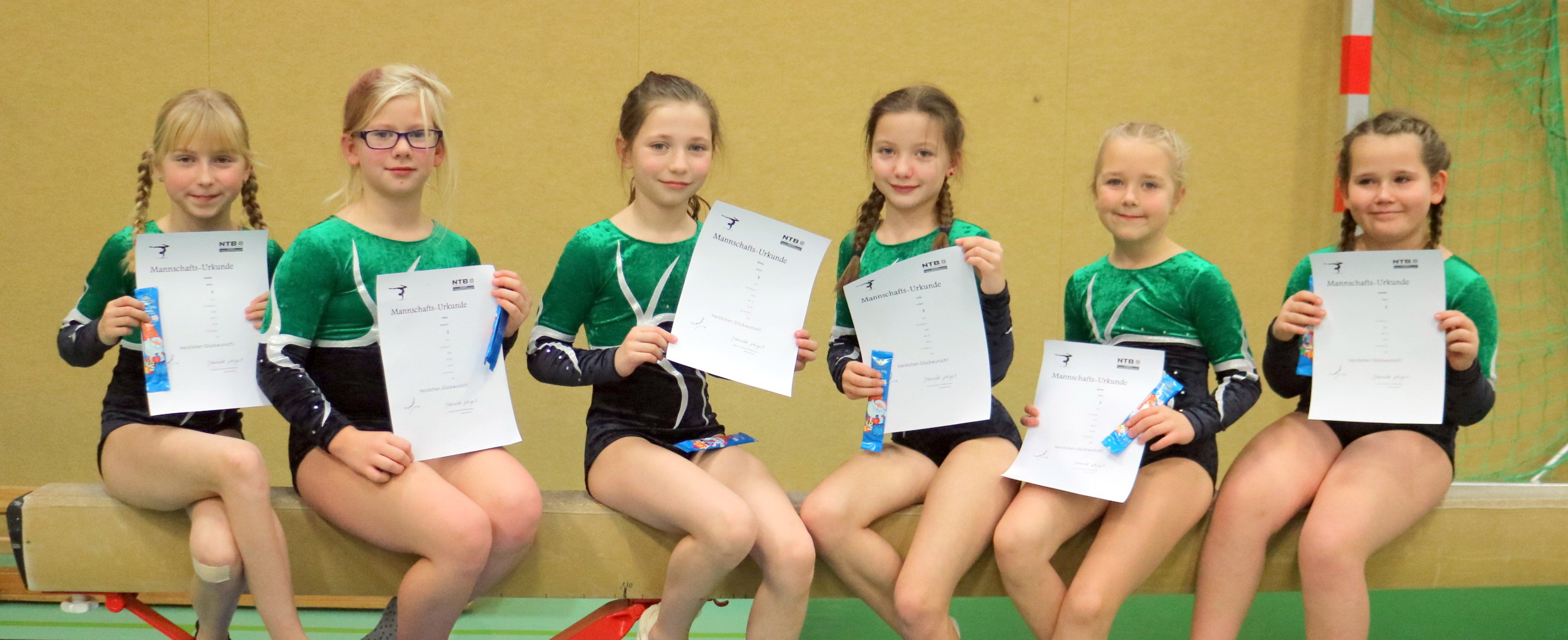 Die Turnerinnen in der E">Wettkampfklasse 5 (LK 4/ Jg. 2004 bis 2000)E"> beherrschten ihre Übungen und „marschierten“ frei und überlegen durch den Wettkampf. Mit einem Vorsprung von 16 Punkten vor der zweitplazierten Mannschaft aus Wüsting-Altmoorhausen brachten sie den Pokal nach Hause. Neuling Swea Riewe war zwar etwas nervös, hat sich aber dennoch in der Mannschaft sichtlich wohl gefühlt. Das E">Ergebnis war klar: Der TuS Glarum erreichte verdient das Goldtreppchen. Hanna Merkel war die überragende Turnerin in dieser Mannschaft. Sie landete auf Platz eins der Einzelwertung, gefolgt von Teamkameradin Raja Schroeder. Hanna erturnte am Bode, am Balken und am Barren die beste Wertung aller Klassementturnerinnen, Raja wurde ihrer Favoritenrolle am Sprung gerecht, zeigte einen frisch erlernten hochwertigen Sprung und bekam die beste Note dafür.