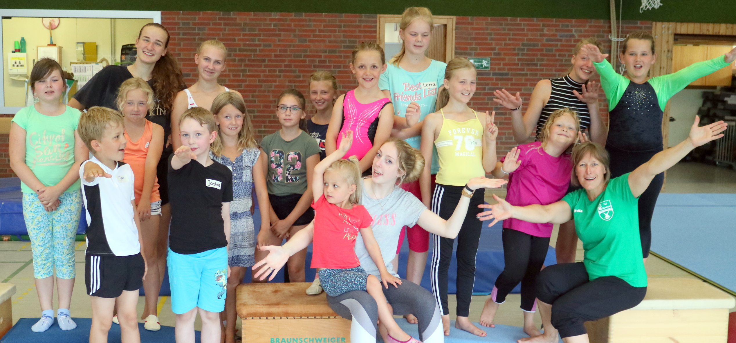 Im Rahmen der durch die Städte Jever und Schortens gemeinsam organisierten Ferienpassaktion nutzten 8 Mädchen und Jungen im Alter von 9 -12 Jahren die Gelegenheit, um buchstäblich einmal „engen“ Kontakt mit den klassischen Turngeräten in der Turnhalle aufzunehmen.