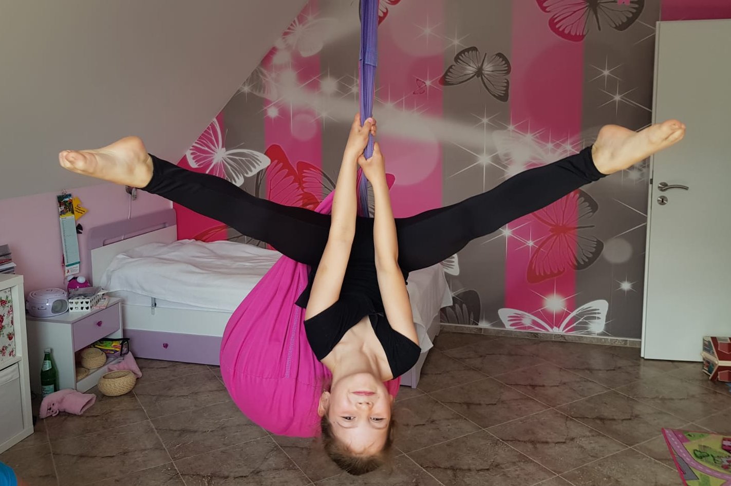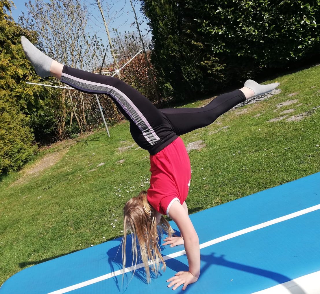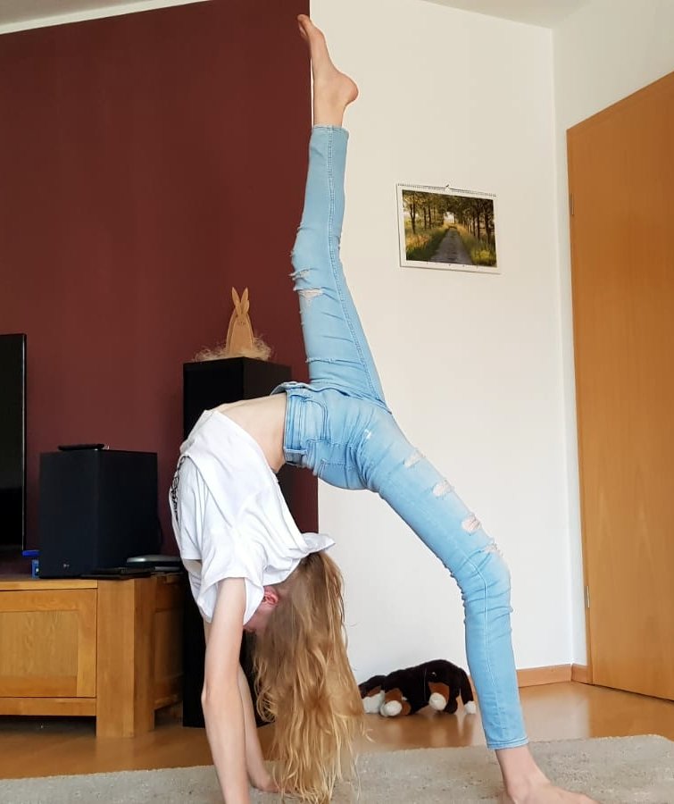 Seit Schließung der Turnhallen Mitte März leiden alle aktiven Gruppen der hiesigen Sportvereine an den Entzugserscheinungen durch den „gefühlt“ verordneten Verzicht an gemeinsamer Vereinsaktivität. Wohl dem, der auch in solchen Situationen auf „Individualbetrieb“ umschalten und sich sportlich zu Hause betätigen kann. Die Turnerinnen des TuS Glarum sind da sehr aktiv und vor allem kreativ. Ein kleines Sportprogramm geht immer. Nach den 2-3 täglich wechselnden, per Whatsapp durchgegebenen „Vorgaben“ ihrer Trainerin Marlene Weinstock finden sich Möglichkeiten, im Haus oder ums Haus herum, sich turnerisch etwas auszutoben. Der heimische Rasen wird unter Zuhilfenahme von eigenen kleinen Turnmatten zu einer Bodenfläche, des Öfteren stehen auch kleine AIRTRACKS, Trampoline, Turnstangen und sogar Schwebebalken zur Verfügung. Abteilungsleiter und Trainer Reinhard Milter: „Wichtig ist die regelmäßige Muskelerwärmung, Kraft- und Haltungstraining sowie das Beibehalten der Dehn- und Bewegungsfähigkeit. Wenn dann auch noch ein klein wenig Technikschulung möglich ist, z.B. bei Drehungen und Sprüngen, ist das die halbe Miete. Wenn dann irgendwann das Vereinstraining wieder möglich sein wird, sollen die Turnerinnen nicht bei Stand Null beginnen müssen. Ich weiß, dass sich alle nichts sehnlicher herbeiwünschen als das gemeinsame Training, den Spaß an der gemeinsamen turnerischen Bewegung und die Vorfreude auf kommende Wettkämpfe, wann immer sie sein mögen“.