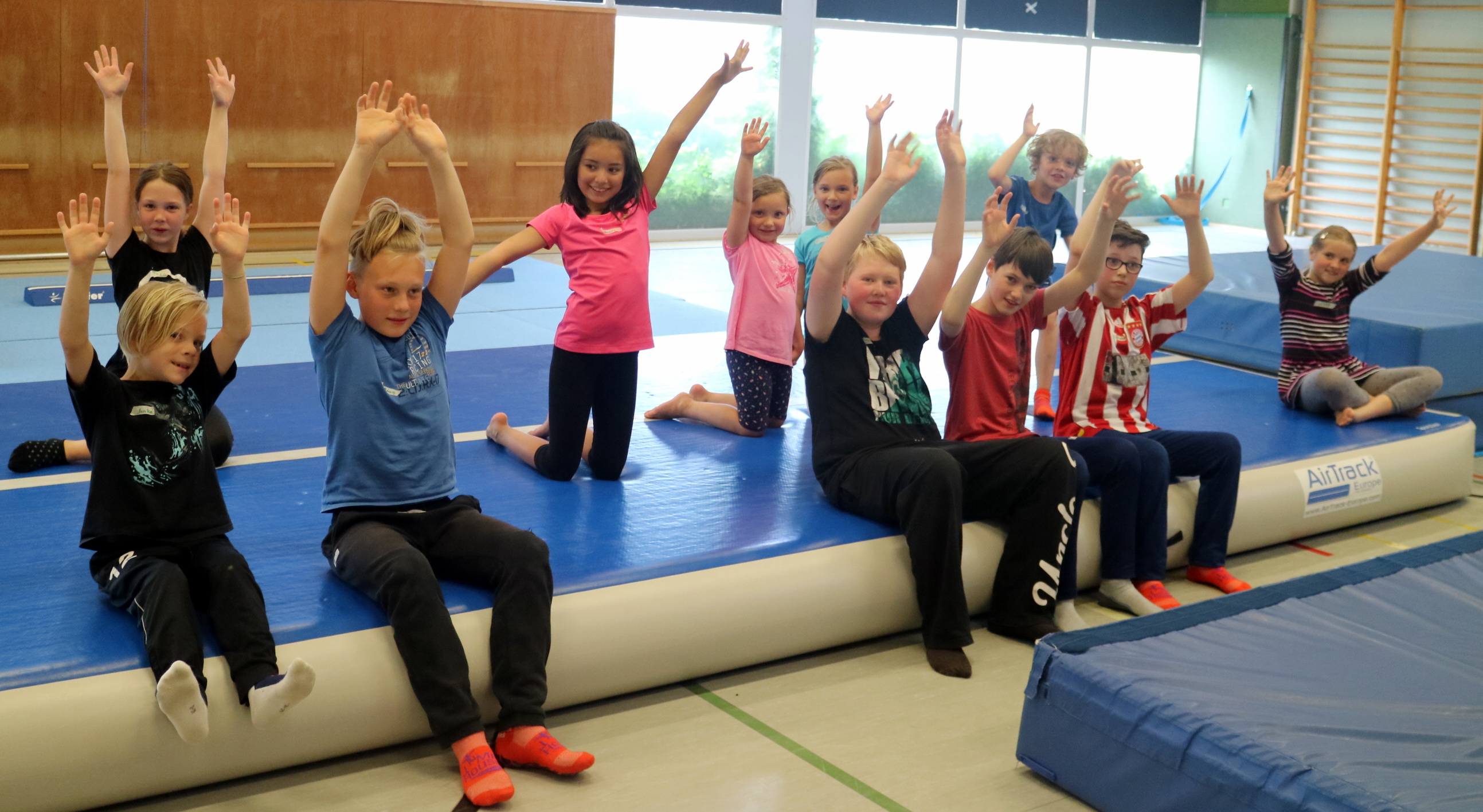 Das Ziel des Schnupperns sollte es sein, Elemente des formgebundenen Gerätturnens vorzustellen und vielleicht auch schon in der Grobform zu erlernen. Am Ende des Tages stand die Rolle in der Luft, der Salto, entweder vorwärts oder rückwärts geturnt, auf dem Programm. Und den meisten gelang es schon recht gut – wenn auch mit Hilfe.