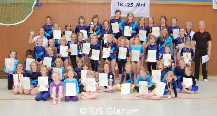Eine erfreulich gute Beteiligung von 48 Mädchen (der TuS Glarum stellte mit dieser Anzahl die weitaus größte Mädchenmannschaft des gesamten Turnkreises) und 4 Jungen aus unserem Verein belohnte die Arbeit und auch den Einsatz des Trainerteams bestehend aus Reinhard Milter, Traute Breckwoldt, Lydia Huber, Meike und Anja Müller, Imke Rodenbach und Ute Lohmann.