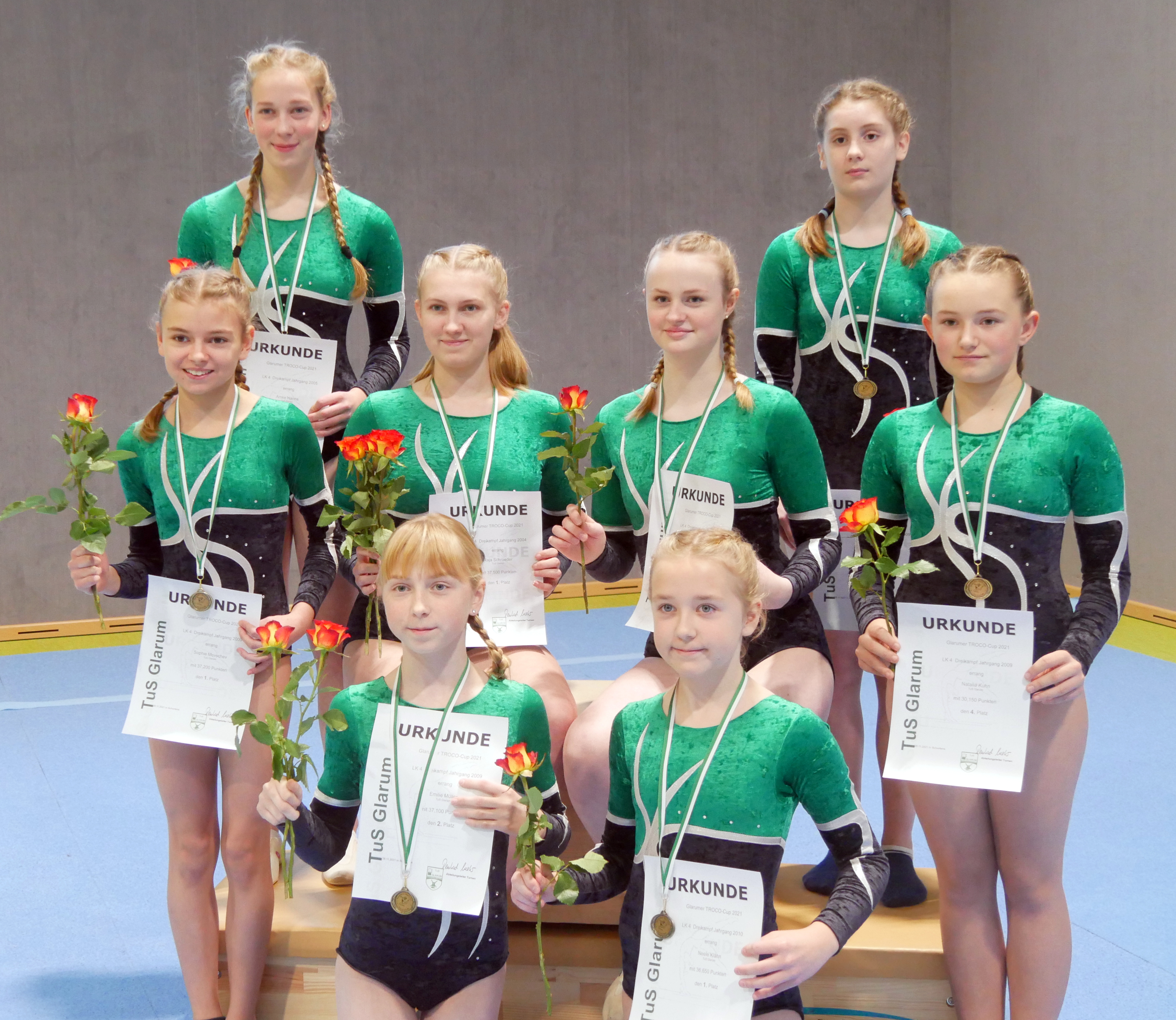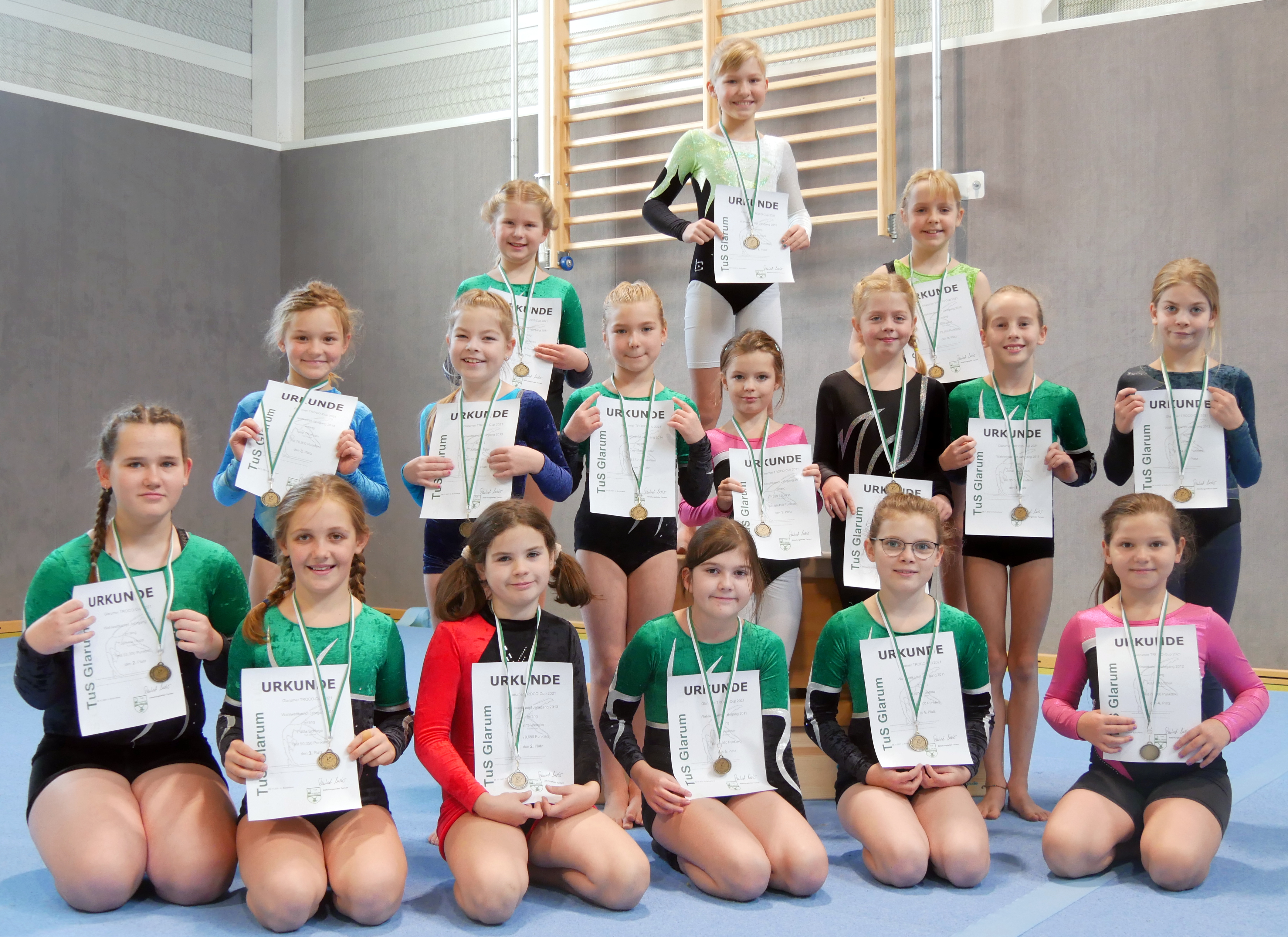 Darüber hinaus hat der Vorstand sich zusammen geschlossen, die Lage sondiert. Die Frage war: Was ist unter den gegebenen Rahmenbedingungen für welche Aktivitäten machbar? Schnell stand fest, dass nach Anpassung des lokalen Schutz- und Hygienekonzeptes den interessierten Glarumer Turnerinnen ein Angebot gemacht werden sollte, eine Ersatzveranstaltung, in kleinstem Rahmen und unter Beachtung der gültigen 2G plus – Bestimmungen. Der Vorsitzende: „Wenn man weiß, wie sehr sich die Aktiven auf diesen Wettbewerb vorbereitet und auf ihn hin gefiebert haben, dann war man sich schnell einig. Etwas muss geschehen. Und das Strahlen in den Augen der Kinder am Wettkampftag und viele positive Rückmeldungen der Eltern haben bewiesen: Es hat sich gelohnt! Ja, es gab Ergebnislisten; ja, es gab eine Siegerehrung. Aber Platzierungen waren an diesem Tage unwichtig. Nur die schon viel zu lang ausgebliebene Wettstreitatmosphäre und das kribbelnde Feeling bei der Vorstellung bei den Kampfrichtern, der Adrenalinkick bei der Übungsvorführung, beim Einmarsch zur Siegerehrung – das hat wirklich gezählt!