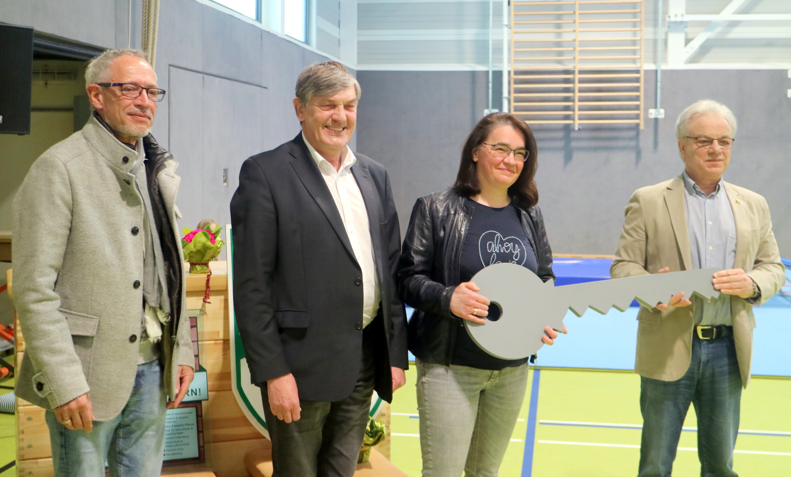 Nun wurde zur offiziellen Einweihung geladen. Also hieß es für alle Gäste: Schuhüberzüge an und hereinspaziert – schließlich soll dem neuen Turnhallenboden nichts passieren. Genutzt wird die Halle von allen Altersgruppen: Krippe, Kindergarten, Grundschule und TuS Glarum.