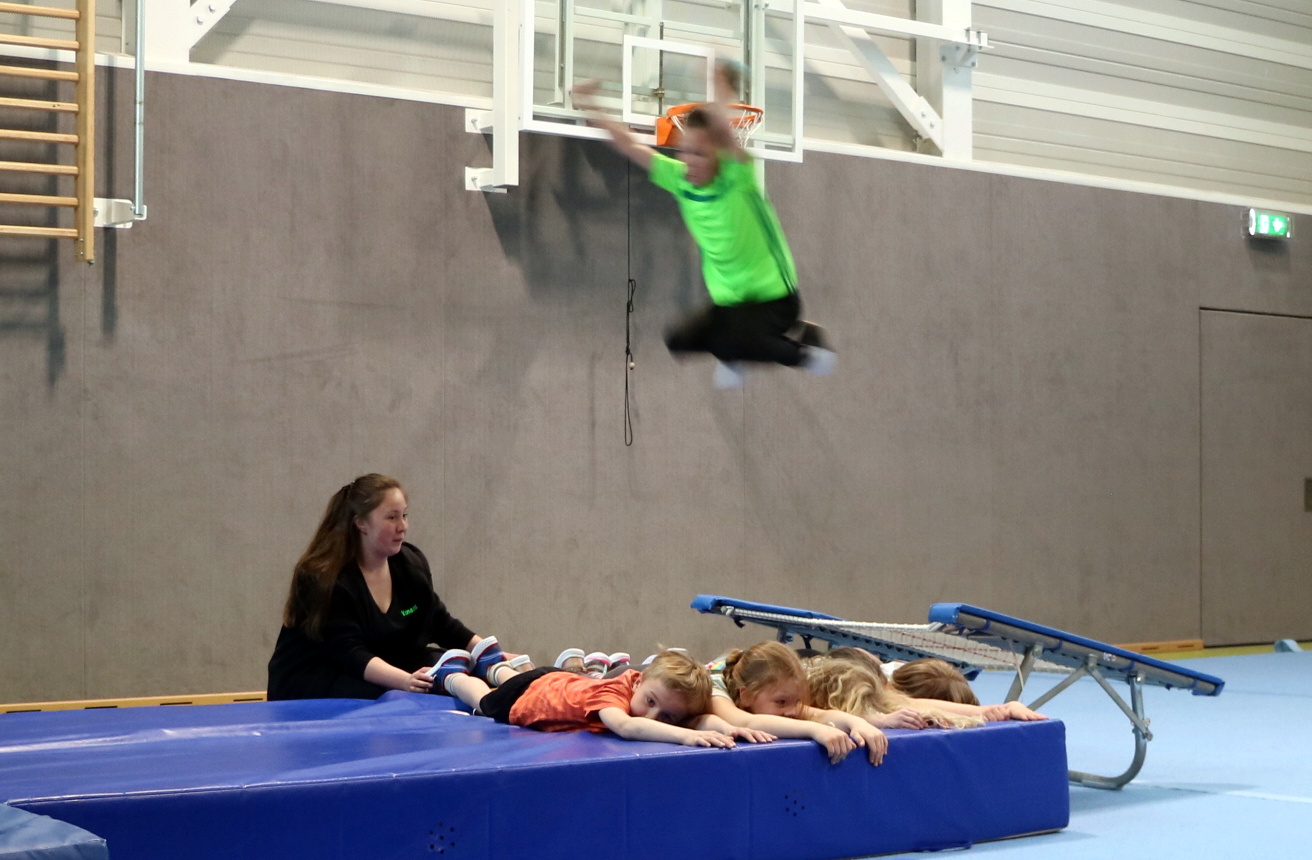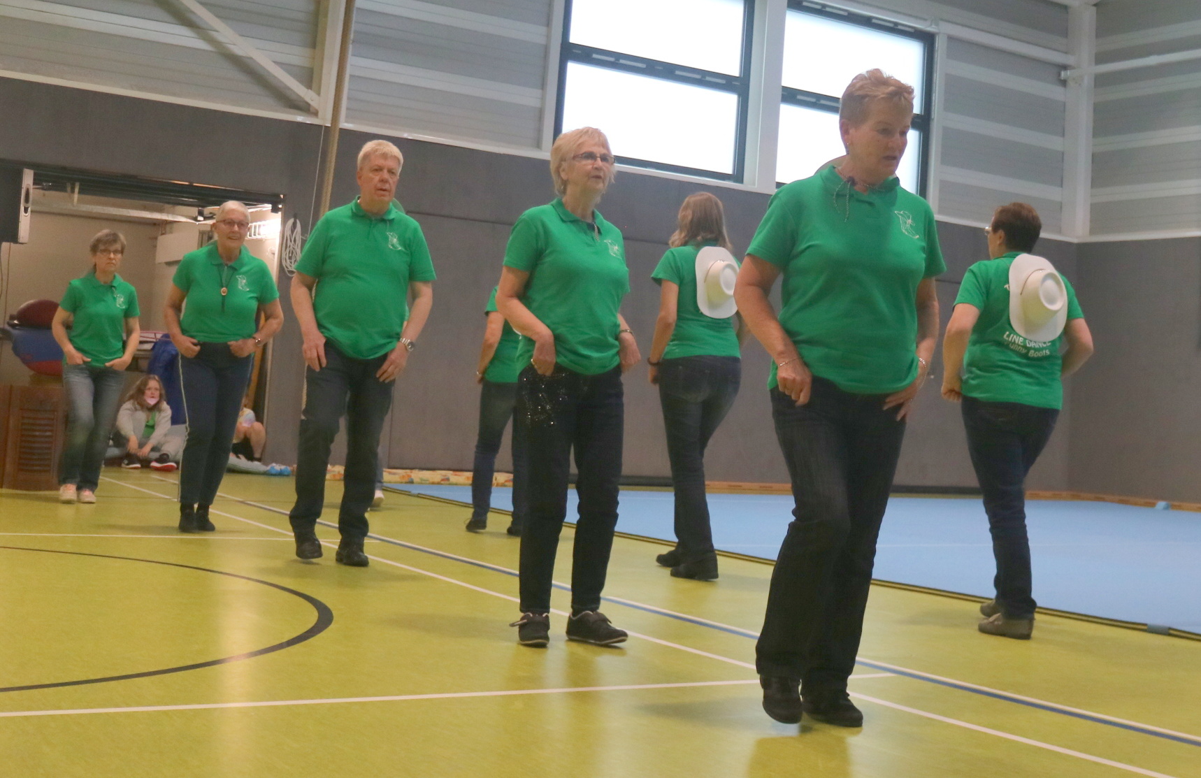 Und alle waren zur Eröffnung da: Von den Turnerinnen im schicken Kostüm, die komplizierte Hebefiguren und Sprünge vormachten, über die Erst- und Zweitklässler, die eine Trampolinshow mit großem Finale aufführten, bei dem sie erst durch einen Reifen und später übereinander sprangen, bis zu den Line-Dancern des TuS Glarum den „Funny Boots“; sie zeigten eindrucksvoll die vielfältige Nutzung der Halle.