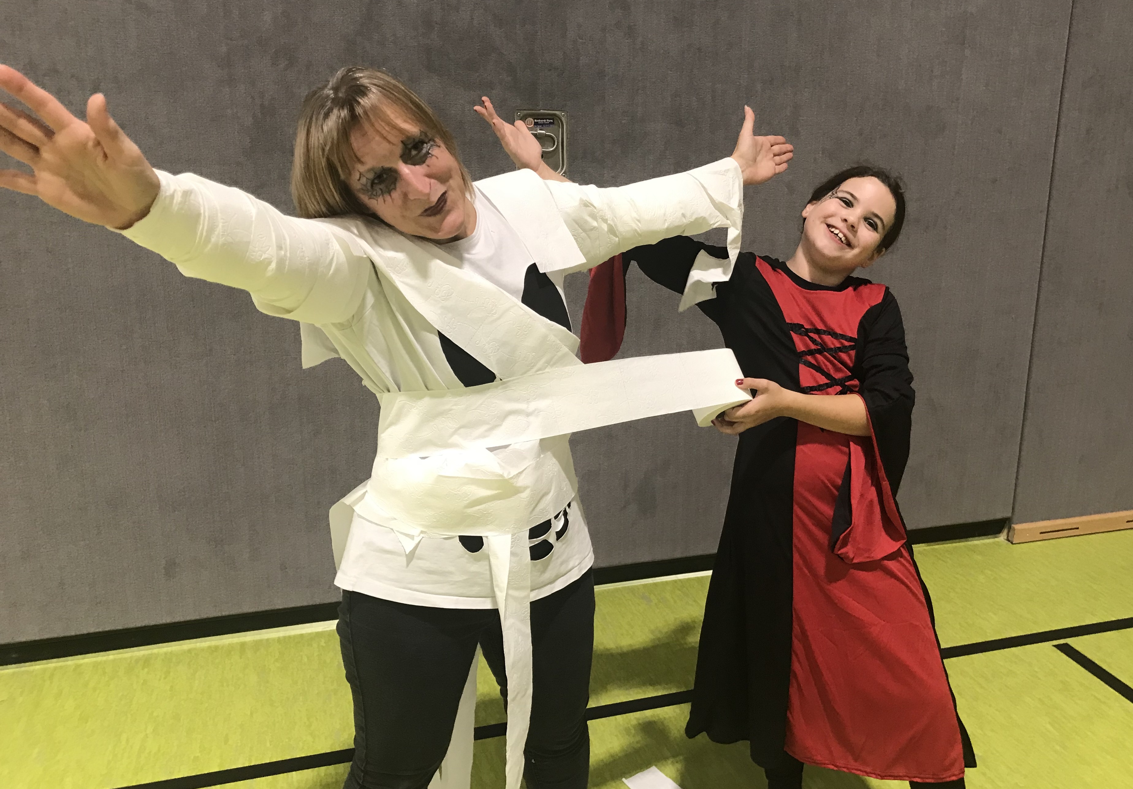 Rund 30 Kinder und einige Erwachsene sind der Einladung in die tolle geschmückte Turnhalle gefolgt. Es konnten Mumien, Vampire, Gespenster und Skelette, Grusel-Prinzessinnen, Spinnenmenschen und viele andere gruselige und fantasievoll verkleidetet Gäste empfangen werden.