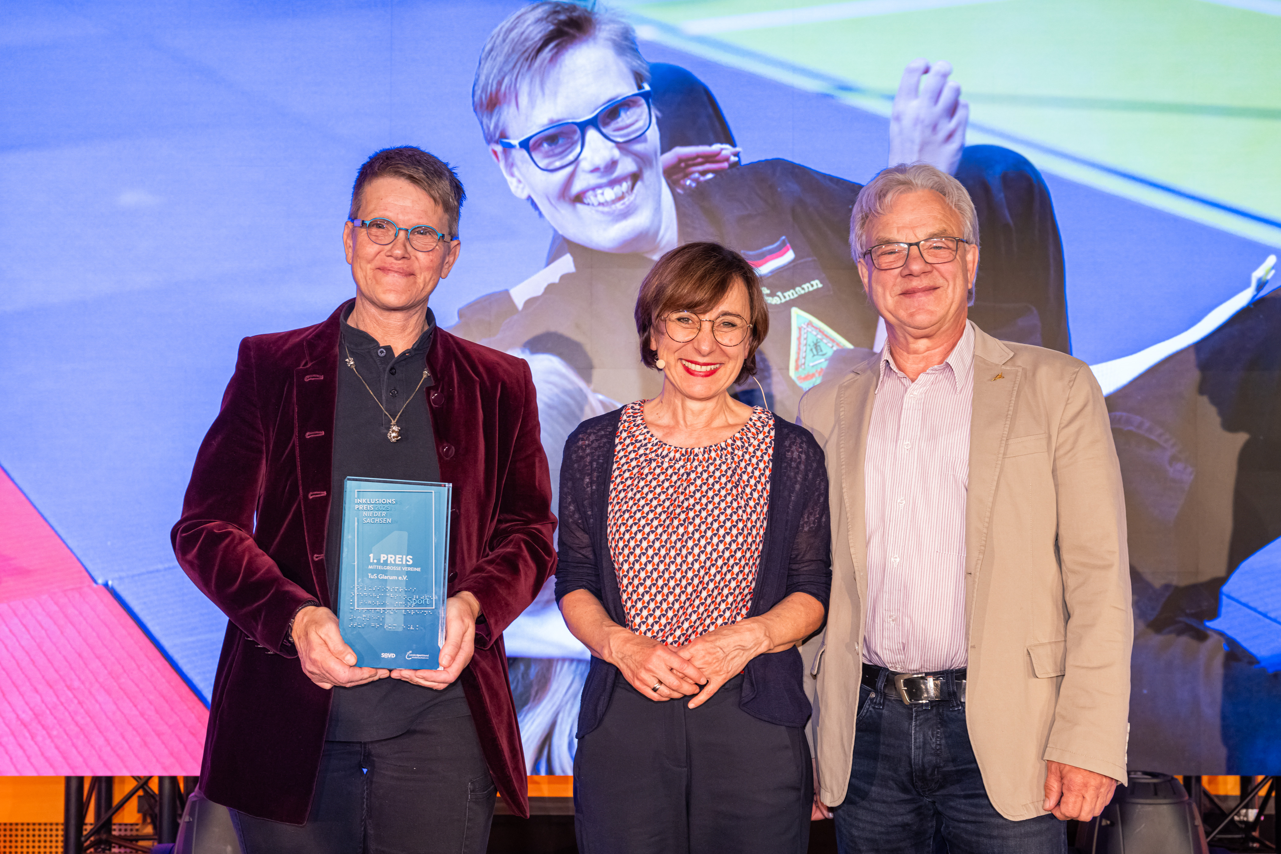 Stellvertretend für das gesamte Team des TuS Glarum nahmen der Vorsitzende Reinhard Milter und die Trainerin Jeanette Netzelmann, eine der zentralen Persönlichkeiten, den Preis entgegen. In der ihr eigenen lockeren und herzlichen Art bedankte sie sich bei der Jury, den Teilnehmenden und dem Verein.