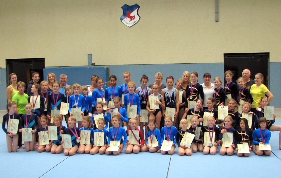 Am Sonntag, den 04. September fanden in der Oestringer Halle „Zum Huntsteert“ die diesjährigen Kreismeisterschaften im weiblichen Gerätturnen statt. Der Schortenser Bürgermeister Gerhard Böhling und der stellvertretende Oberturnwart des Turnkreises Friesland Gebhard Böhling konnten insgesamt 48 Turnerinnen aus den Vereinen TuS Glarum, HFC Heidmühle, TuS Oestringen und TuS Sillenstede begrüßen. Der Wettkampf bot den Athletinnen im Alter von 7 bis 19 Jahren auch die Möglichkeit, sich für die Teilnahme an den im September in Bramsche bzw. in Wardenburg stattfindenden Bezirksmeisterschaften zu qualifizieren, sofern sie denn in einer für die Qualifikation vorgesehenen Wettkampfklasse (KE = Kreisentscheid) antraten.